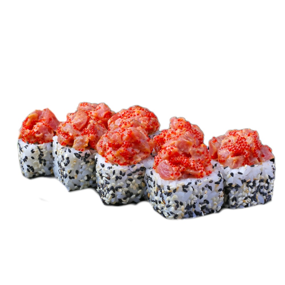 Рис, норі, тунець, ікра масаго, спайсі соус, огірок, крем-сир, соус унагі.